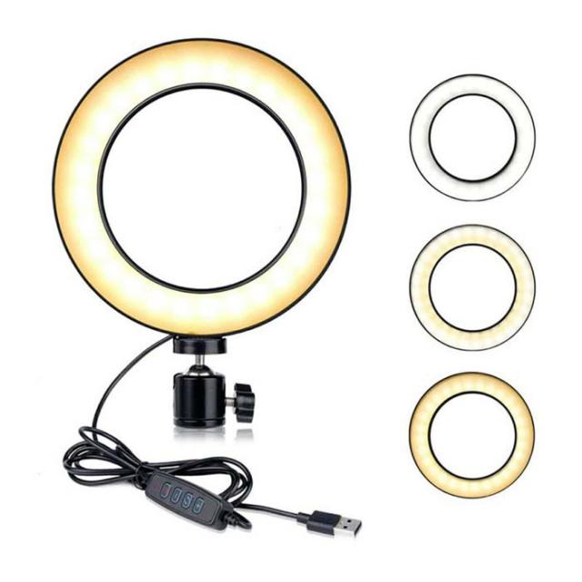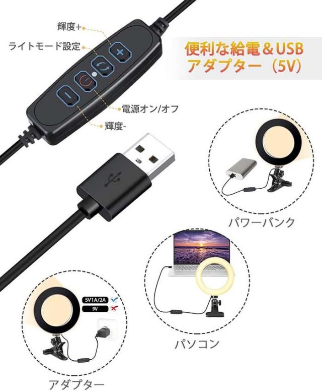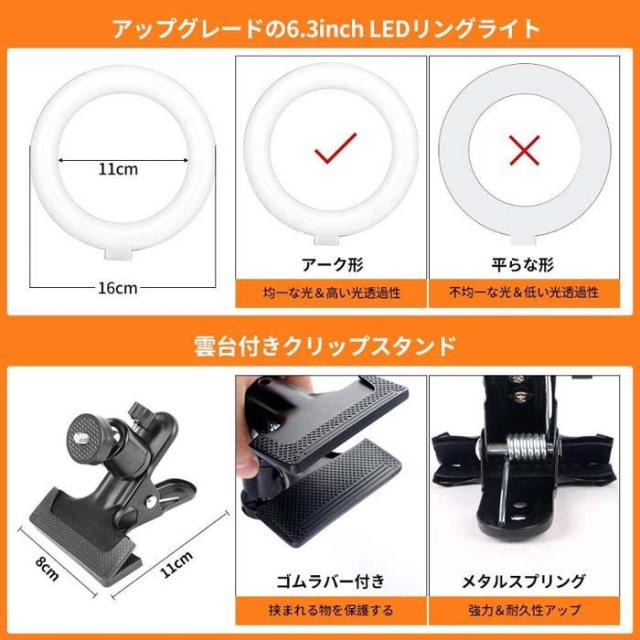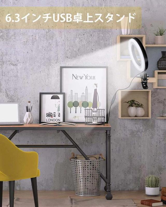 LEDリングライト 6.3インチ 16cm 照明 LEDライト 撮影 手元 卓上 スタンド クリップライト セルフィーリングライト