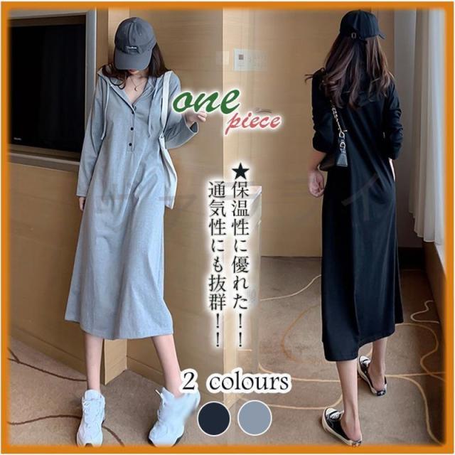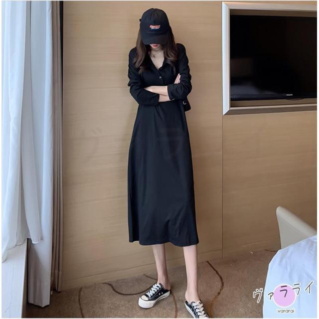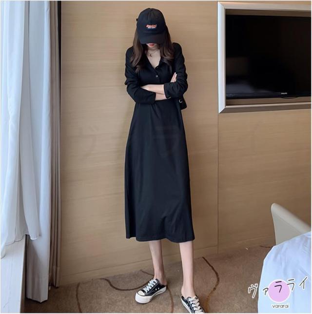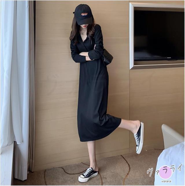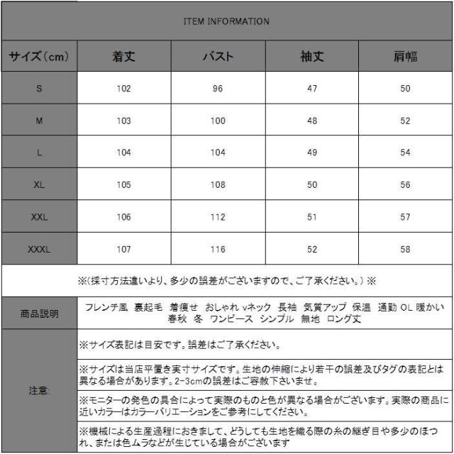 フレンチ風 裏起毛 着痩せ おしゃれ vネック 長袖 気質アップ 保温 通勤 OL 暖かい 春秋 冬 ワンピース シンプル 無地 ロング丈