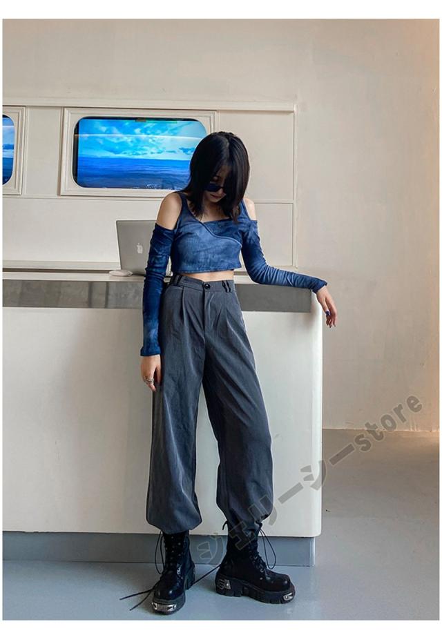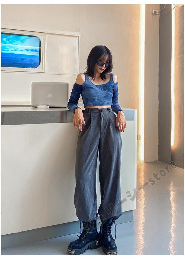 ロングパンツ ガウチョパンツ トレーニング 無地 グレー カーゴパンツ ストレート メンズ レディース ダンス衣装 運動着