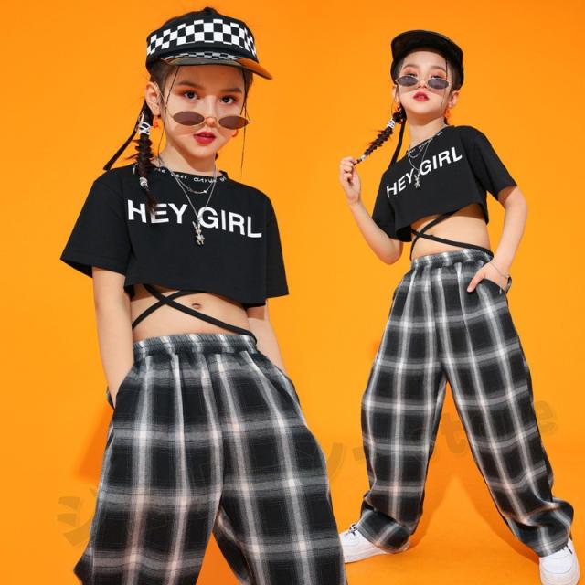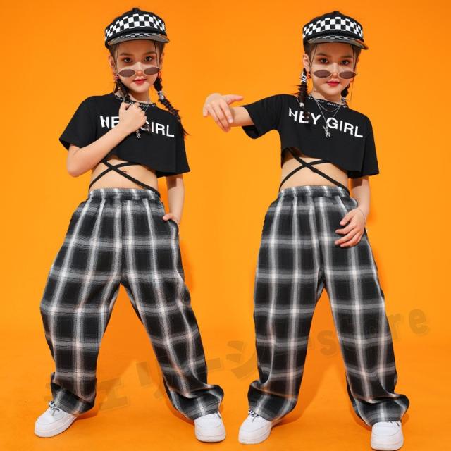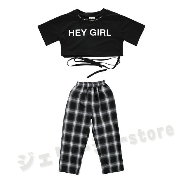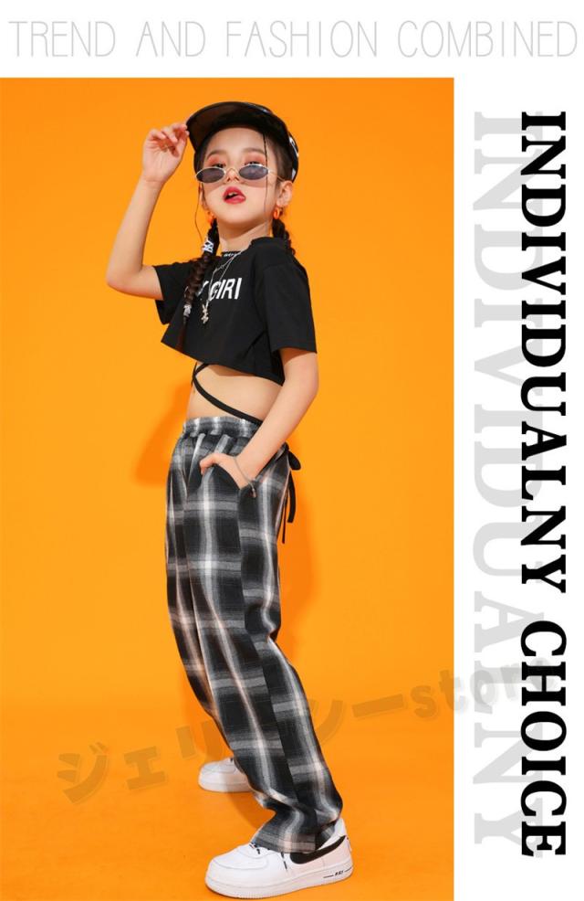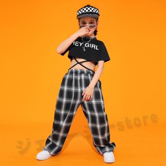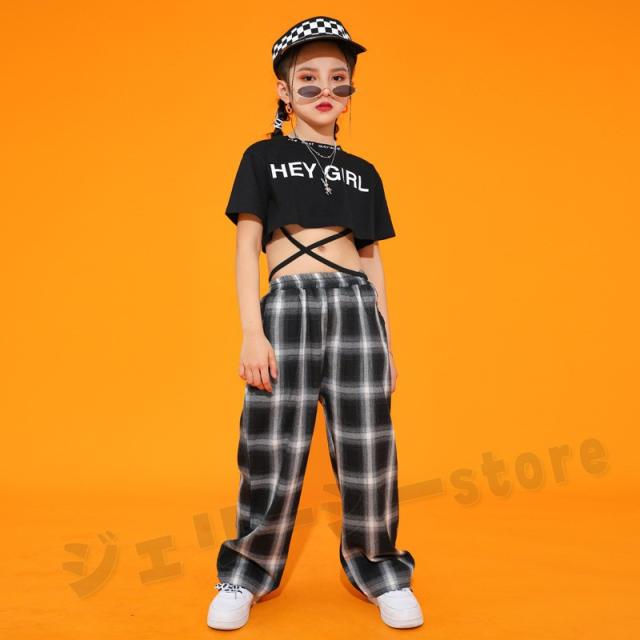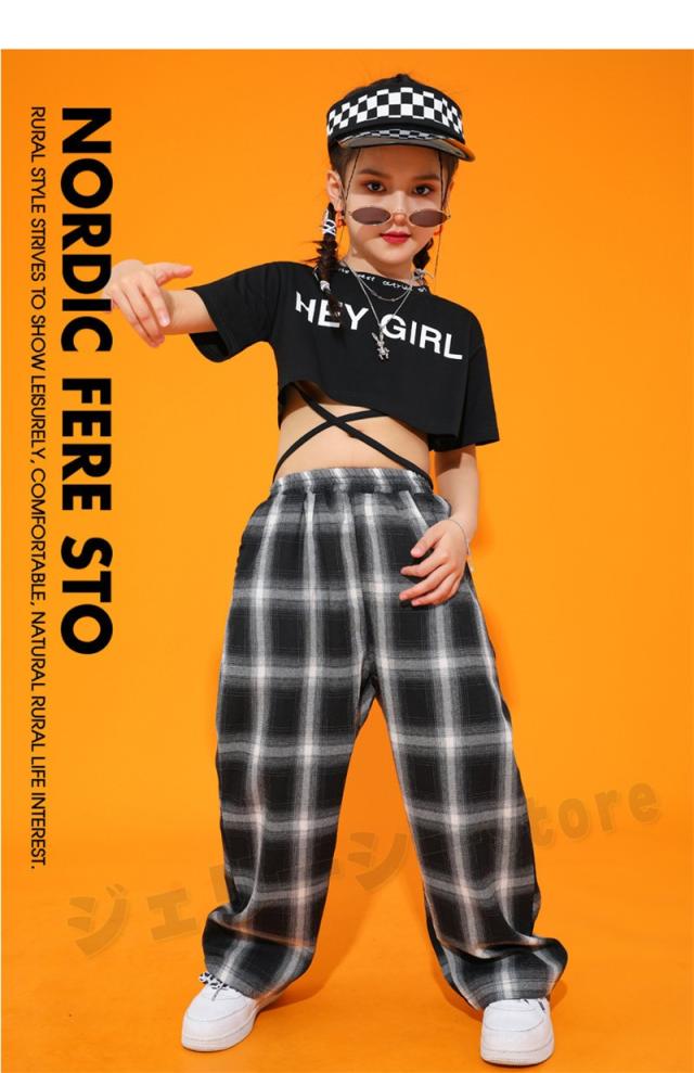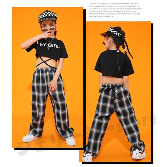 へそ出し 女の子 セットアップ ヒップホップ キッズダンス衣装 セットアップ チェック柄 タンクトップス パンツ 子供服 演出服 舞台服 競技 練習着