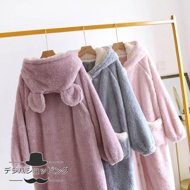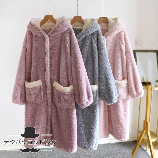 ナイトガウン レディース ルームウェア フランネル 厚手 ゆったり ロングパジャマ スウィート コーラルフリース バスローブ カーディガンパジャマ 可愛い