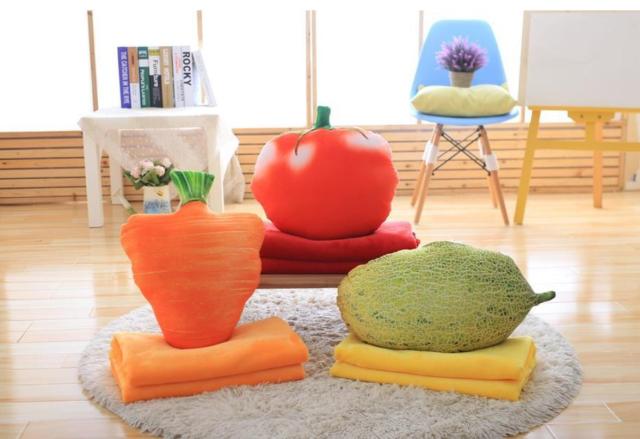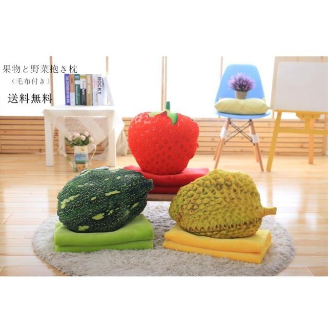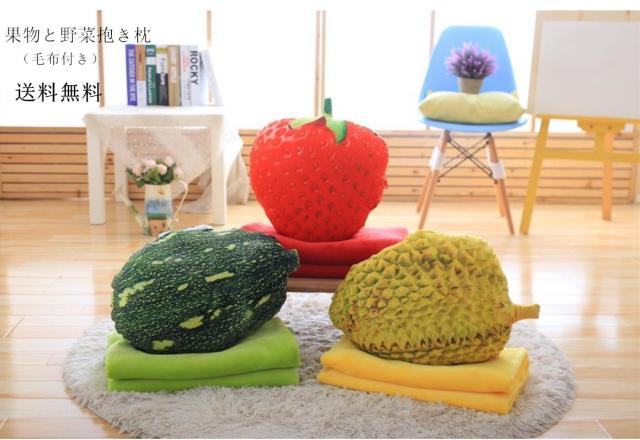 抱き枕 エアコンブランケット 毛布付き オフィス ナップ ピロー クッション 3D 野菜 フルーツ