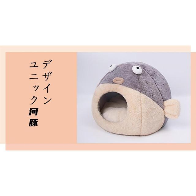 猫ハウス ベッド ペットハウス クッション 河豚デザイン 冬用 猫ハウス マット ペットベッド 犬ベッド 可愛い 猫用 犬用ベッド クッション 保温防寒 あったか