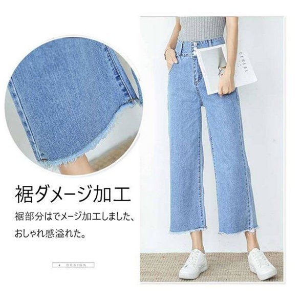 ワイドパンツ デニム パンツ レディース ボトムス Gパン ジーパン ロングパンツ ガウチョパンツ 大きいサイズ ダメージ 九分丈 春 新作 新着