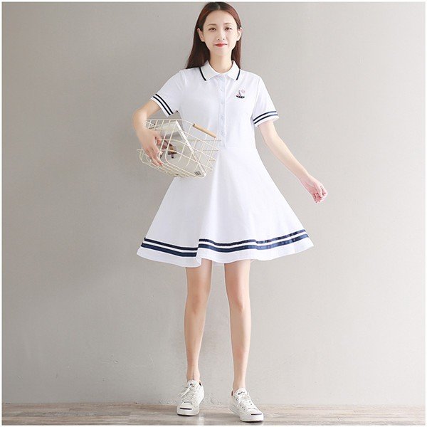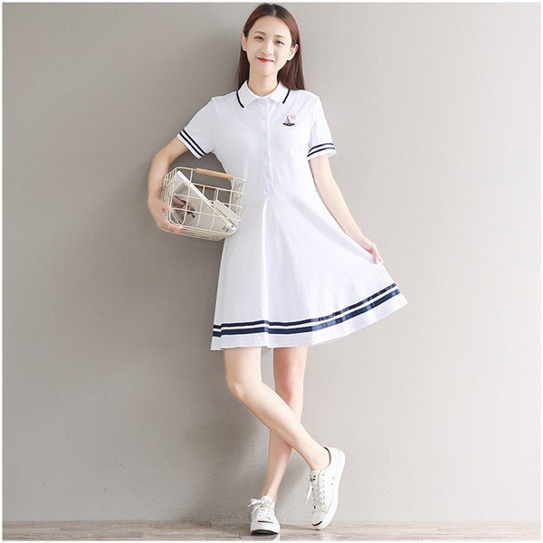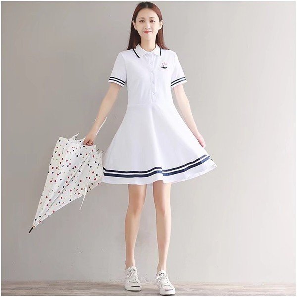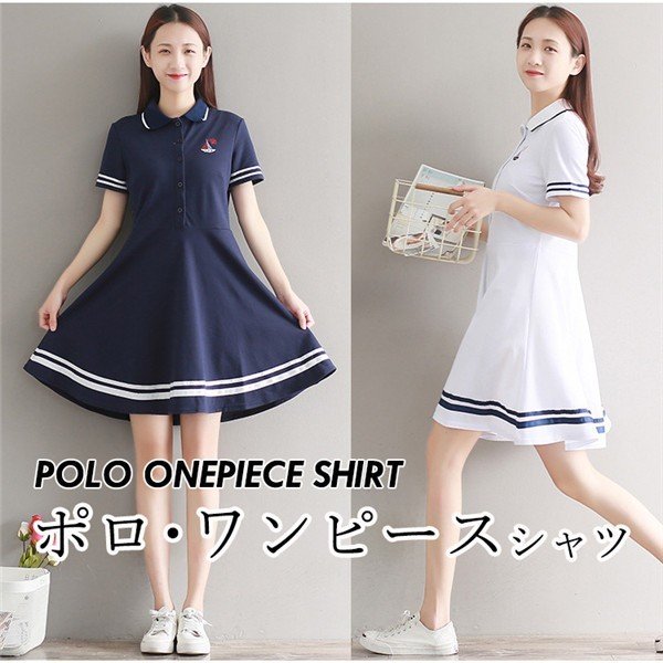 ドライポロシャツ ポロワンピース レディース 半袖 Aライン スポーツウェア 半袖ポロシャツ レディース 刺繍 吸汗速乾 白