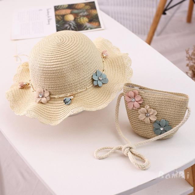 親子 お揃い 帽子 バッグ 3点セット 麦わら帽子 ショルダーバッグ 鞄 カバン ママ 女の子