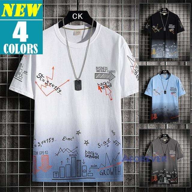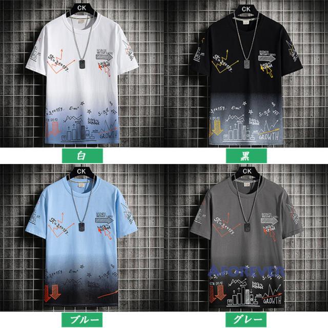 Tシャツ 半袖 メンズ おしゃれ カットソー カラー配色 クルーネック 半袖Tシャツ グラデーション トップス 夏服
