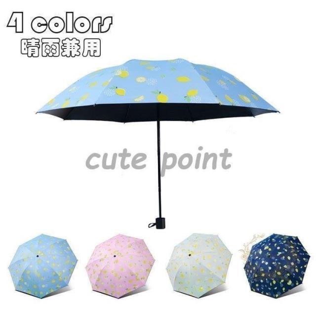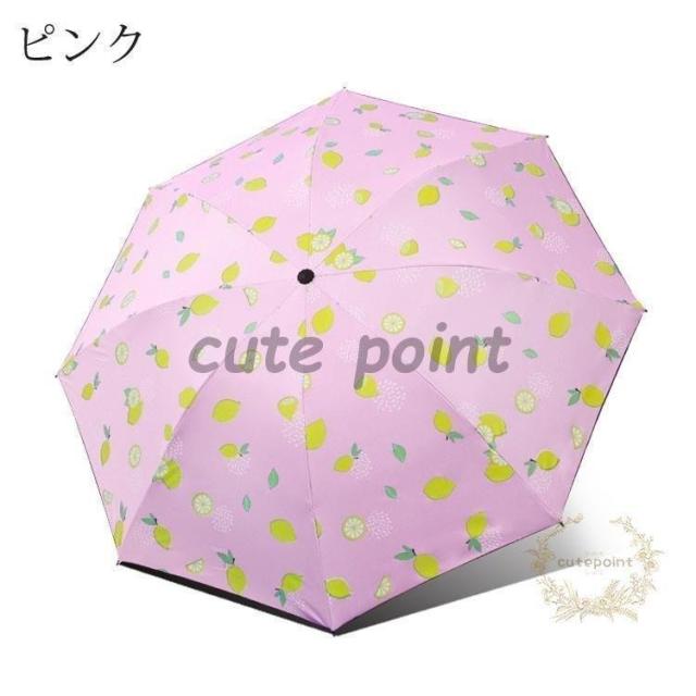 折りたたみ傘 晴雨兼用 手動開閉 日傘 撥水加工 折り畳み傘3段折り レモン柄高強度 耐久性の高い8本骨 大きめサイズ かさ カサ 耐強風 遮熱遮光 軽量 UVカット