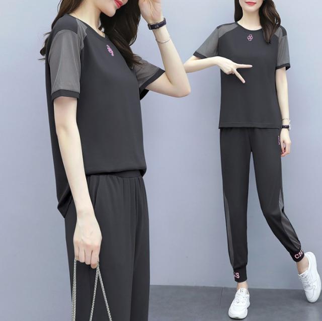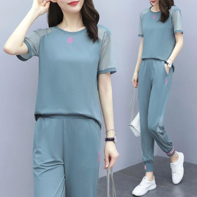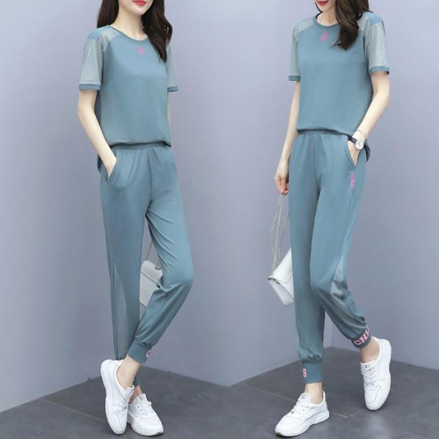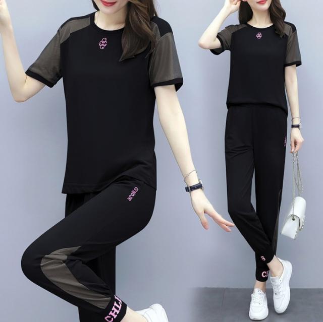 ジャージ セットアップ レディース スウェット ゆったり 上下セット Tシャツ 九分丈パンツ 部屋着 夏新作