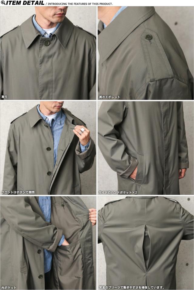 | 商品説明 | 実物 新品 デッドストック フランス軍 オフィサー ステンカラーコートのご紹介です。 フランス軍実物放出品で、90年代から2000年代にフランス軍で使用されていたステンカラーコートです。 デザインはシンプルで、フロントは比翼仕様、両サイドにポケットで、バックは大きくアクションプリーツをとったデザインです。 カジュアルにもフォーマルにも着て頂けますしスーツなどの上から着てもとても雰囲気が良いです。 スプリングコートとしても使えます。 カラーはグレーとカーキの中間のような色合いで上品な雰囲気です。シルエットはやや細身でスッキリと着ていただけます。 未使用デットストックでの入荷です。 凄くいいコートです!! | ||||||||||||||||||||||||||||||