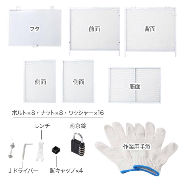 付属:組み立て説明書、南京錠×1、レンチ×1、Jドライバー×1