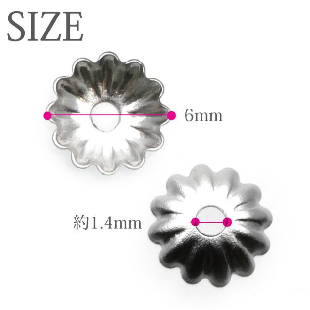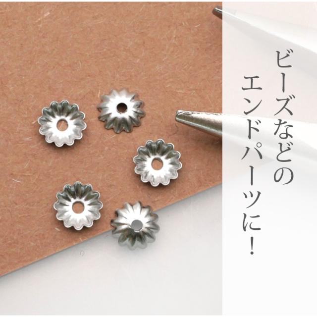 サージカルステンレス製のアクセサリーパーツ、手作りアクセサリーのパーツにおすすめの座金です。 サイズは約直径6mm。 ビーズ径8mm〜12mm推奨です。 エンドパーツにおすすめです。 ステンレス製ですので、金属アレルギーの方も安心してご利用いただけます。