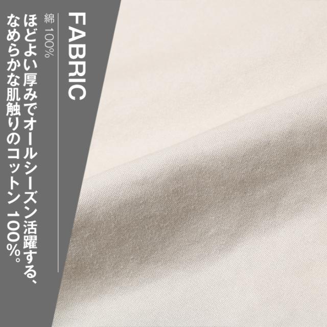 程よい厚みのオールシーズン活躍する生地感。品の良い、なめらかな肌触りのコットン100%です