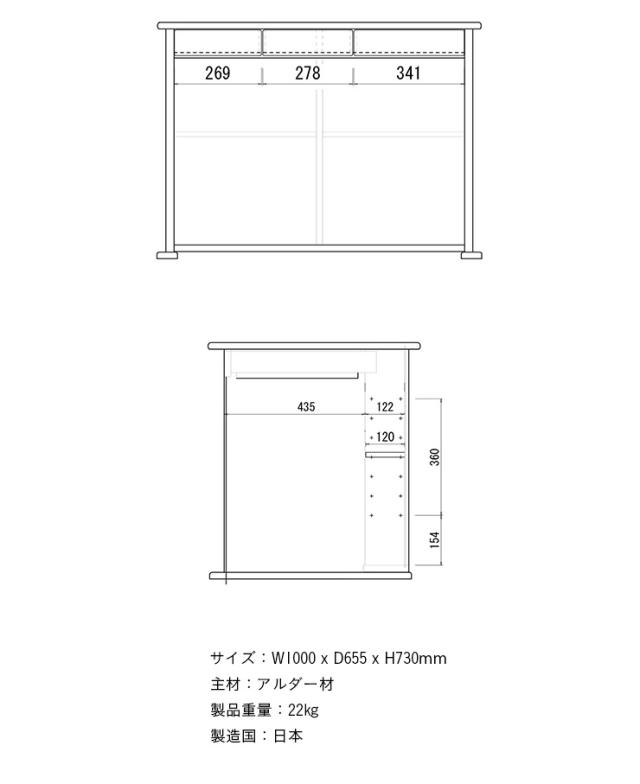 W1000 x D655 x H730mm