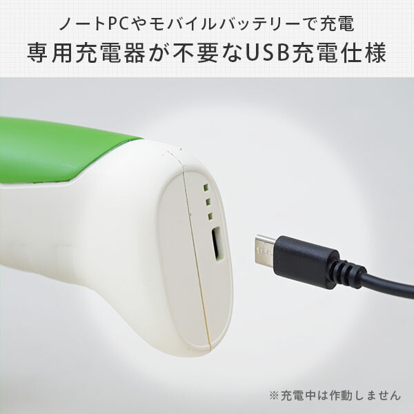 - とても重宝しています。 USB充電式なのでバッテリーを取り付けたりということがないため、軽くて小ぶりで気軽に使えます。
