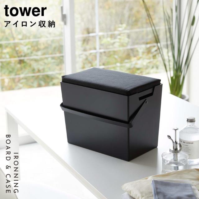 アイロン掛けできる蓋付きアイロン収納ケース 山崎実業 tower アイロン 収納 ケース アイロン台 コンパクト おしゃれ モノトーン ホワイト ブラック 5457 5458