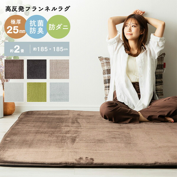 極厚 フランネル ラグ 抗菌 防臭 防ダニ 2畳 185×185cm フランネルラグ ラグマット カーペット マット 絨毯 ホットカーペット ホットカーペットカバー 床暖房 センターラグ リビングラグ 山善 YAMAZEN 【送料無料】