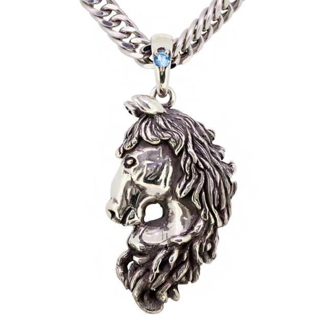 11月誕生石ブルートパーズを使用したシルバー製の、馬(ホース)モチーフメンズネックレス(ペンダント)です。