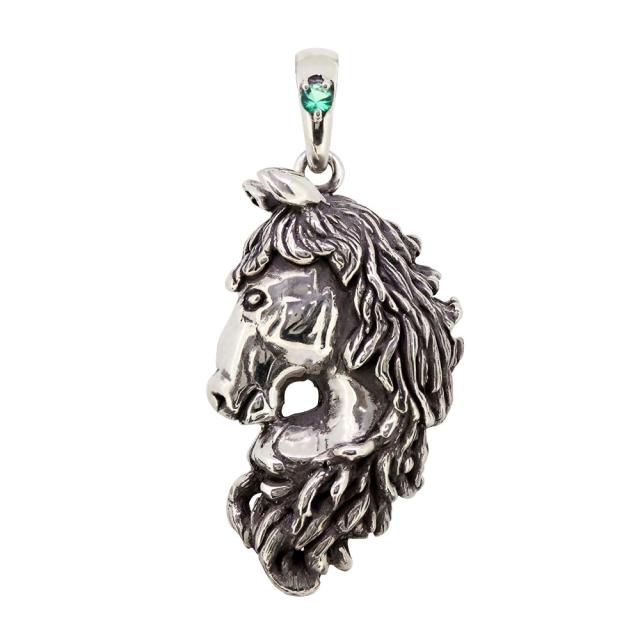 5月誕生石エメラルドを使用したシルバー製の、馬(ホース)モチーフメンズペンダントヘッドです。