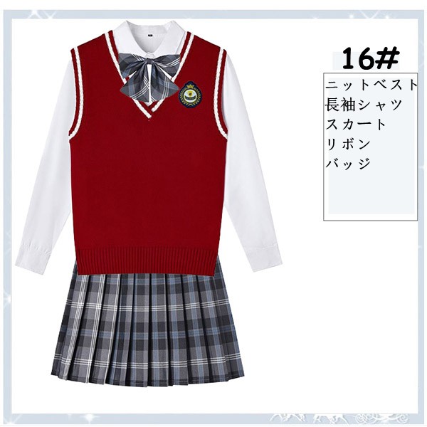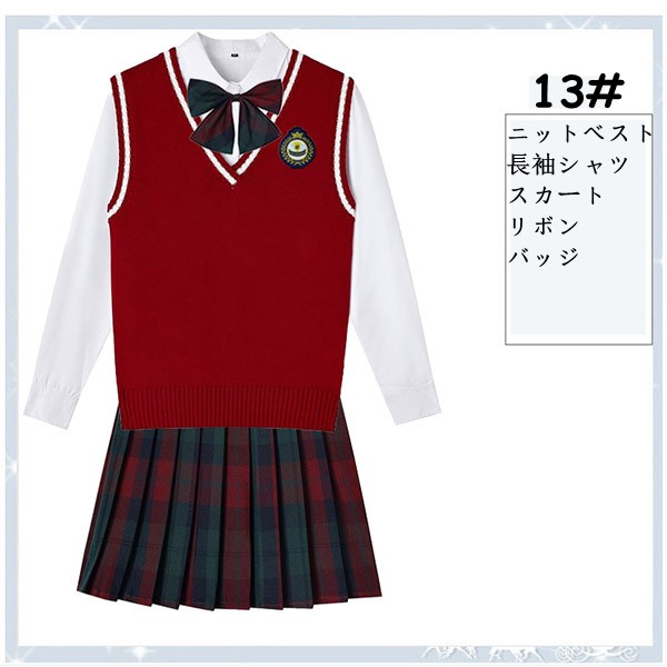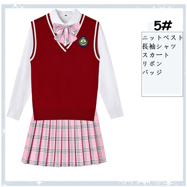 制服 5点セット 女子 セットアップ JK制服 学生 ガールズ セーター ベスト チェックスカート シャツ リボン レッド 赤 女子高校生 女子制服 入学式 卒業式 ワインレッド 大きいサイズ コスプレ 衣装 お揃い XS S M L XL 2XL 3XL 4XL dv001s1