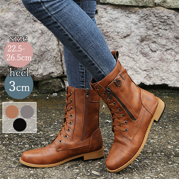 ショートブーツ レディース ショートブーツ 編み上げ スノーブーツ ブーツ 編み上げ 裏起毛 保温 防寒 無地 カジュアルシューズ レースアップ 秋冬靴 歩きやすい 厚底ブーツ 暖かい 通勤用
