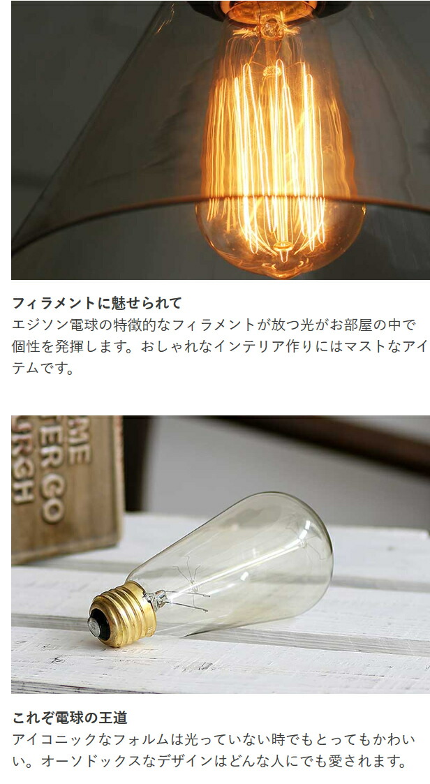 | 品名 | VINTAGE Collection エジソン電球 口金E26 |