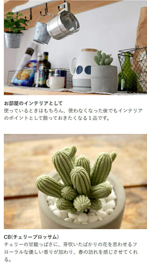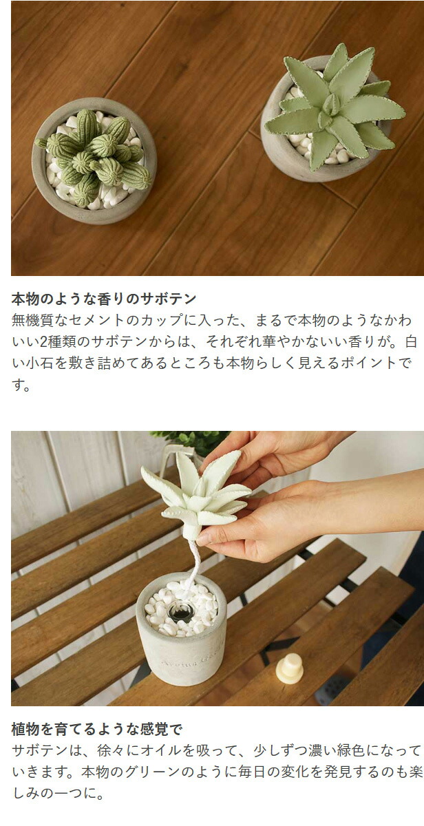 日の光をたっぷり浴びてキラキラ輝くサボテンのように、かわいくて思わず微笑んでしまうような見た目のリードディフューザー。本物の多肉植物と合わせて飾ってもよく馴染むおしゃれな形です。見ているだけで癒される、本物そっくりな香りのサボテン。
