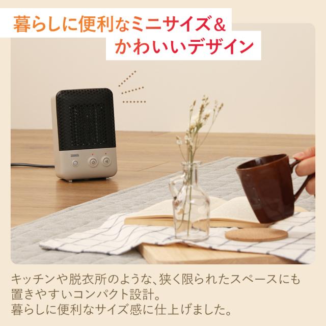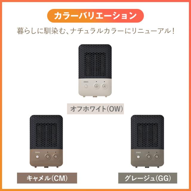 小さく丸みのあるボディが魅力のヒーターが、新色のナチュラルカラーにリニューアル。冷えがちな脱衣所やトイレにも置けるコンパクトサイズのため、ヒートショック対策にも。コンパクトサイズながら600Wのパワーで、足元からしっかり暖めます。さらに人感センサー機能やオートオフ機能も搭載し、安全・節約設計な点も◎。内蔵した活性炭フィルターがホコリやニオイを吸着します。インテリアに合わせてお気に入りのカラーをお選びください。