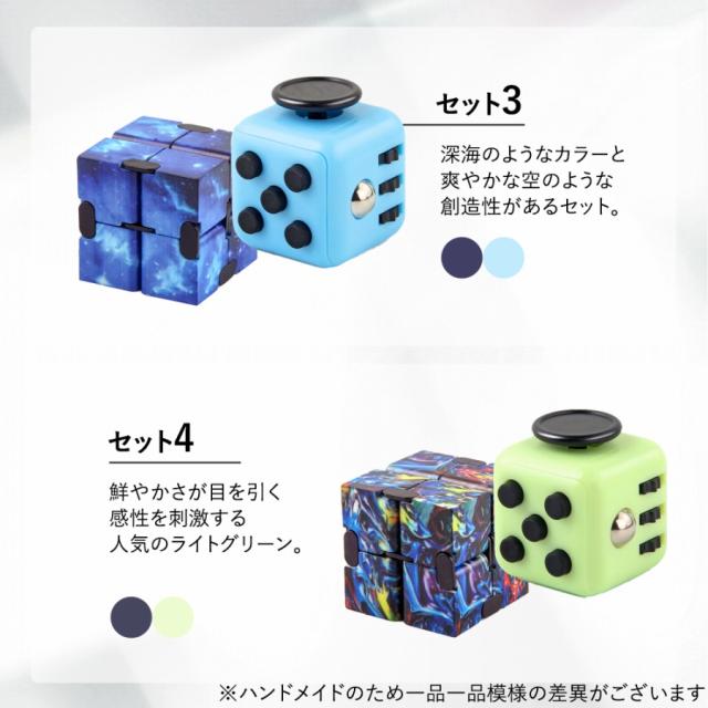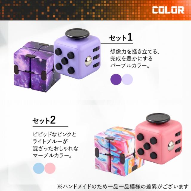 | 主な仕様 | ●商品内容 : 2種のキューブのセット ●カラー : 商品画像を参考にセット1〜4からご選択ください ※お使いの環境により画像の色と実物の色と違って見える場合がございます ●サイズ:約4cm×約4cm/約3.4cm×約3.4cm |