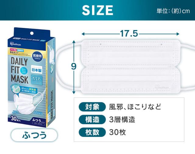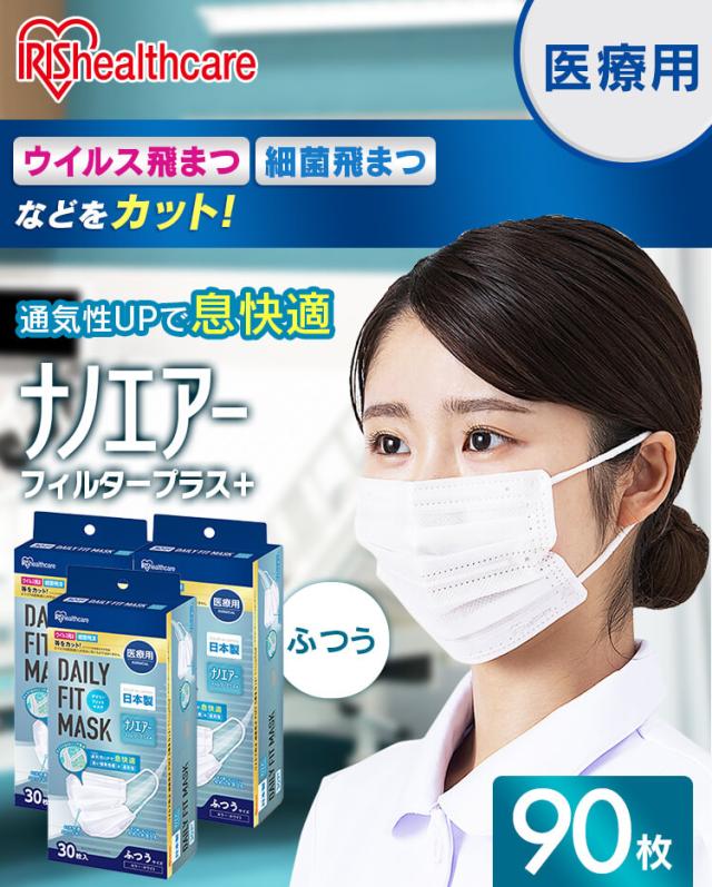 マスク 不織布 [90枚] アイリスオーヤマ 医療用 デイリーフィットマスク ナノエアーフィルタープラス ふつうサイズ 30枚入 SPN-DNI30L ホワイト飛まつ 風邪 ハウスダスト 花粉 ほこり