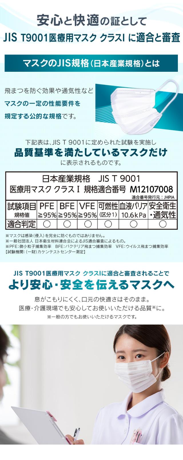 アイリス—オーヤマが作るマスクの、安心と快適の証としていち早く【JIS T9001医療用マスク クラスI】に適合。