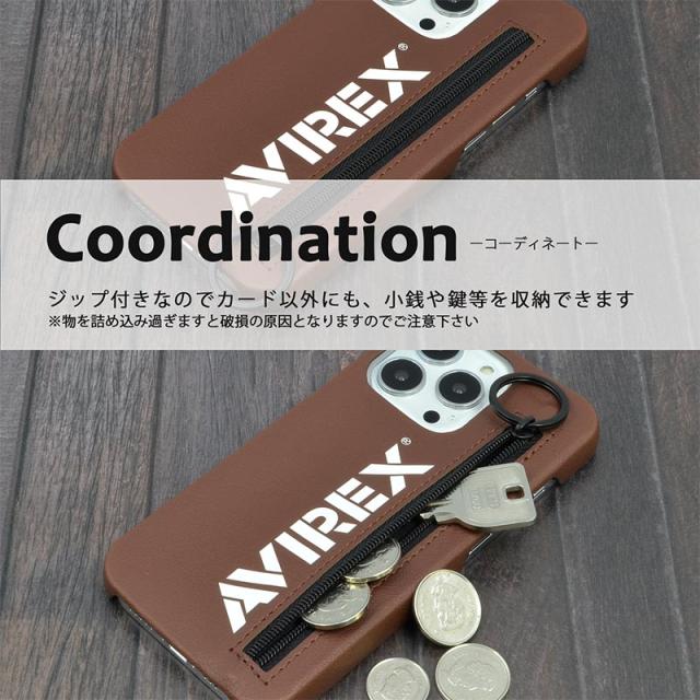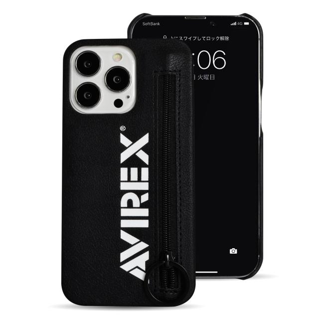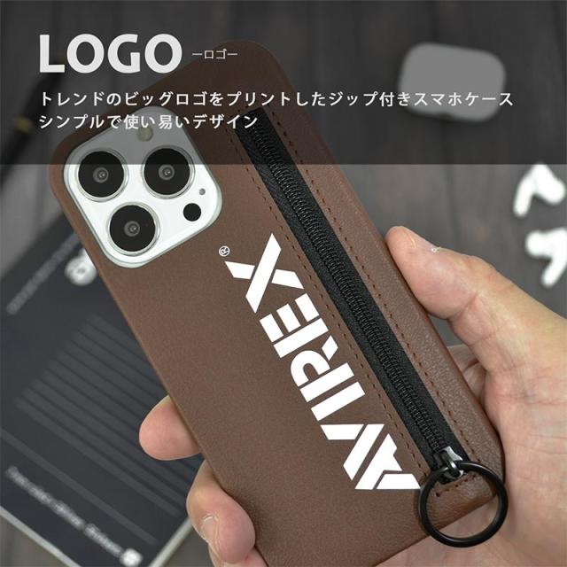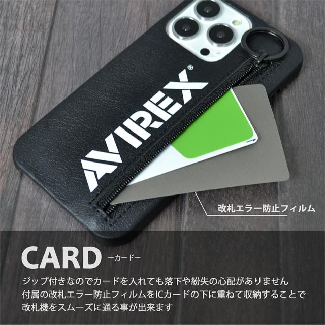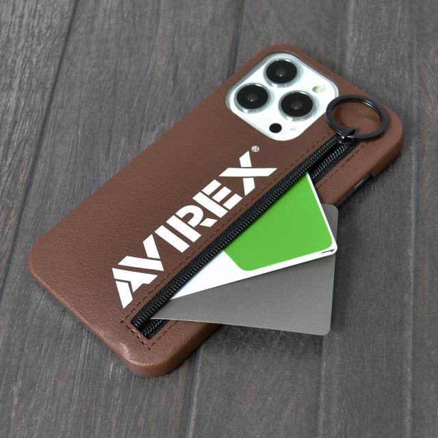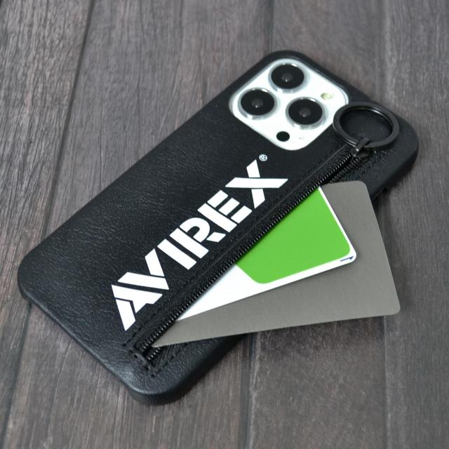 ミリタリーブランドAVIREX(アヴィレックス)のiPhoneケース。ジップがついており収納物の落下の心配もなく、また、改札エラー防止フィルム付きですので、ICカードも収納可能です。