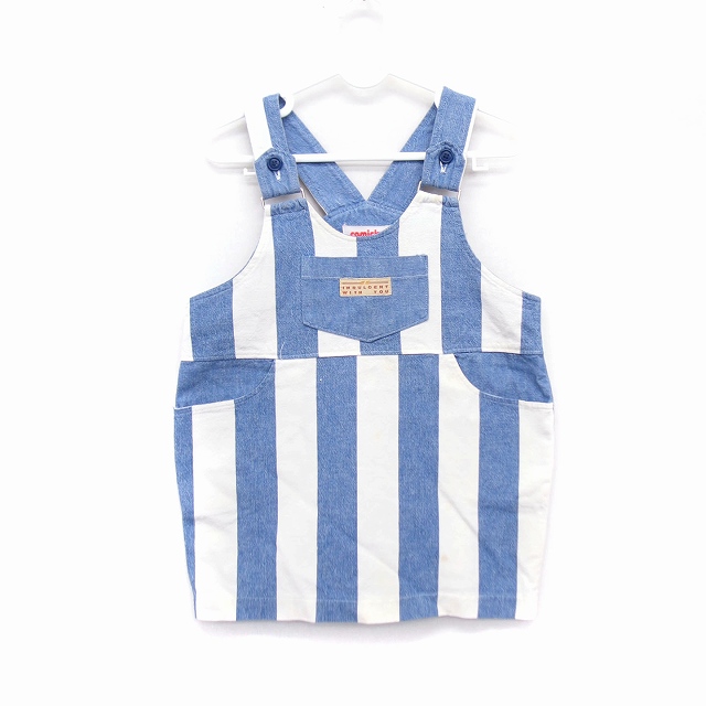 【中古】comicky 子供服 ジャンパースカート ワンピース ミニ コットン 綿 ストライプ 柄 100 ライトブルー 青