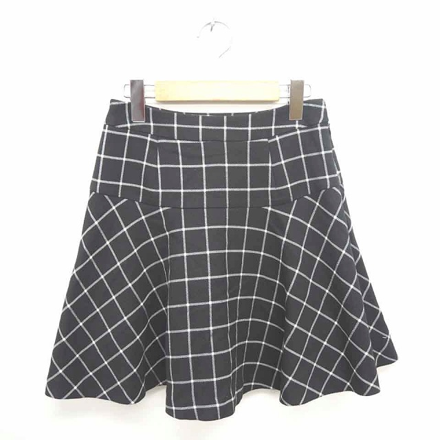 【中古】ミッシュマッシュ MISCH MASCH スカート フレア ミニ チェック サイドジップ 36 ブラック ホワイト 黒 白
