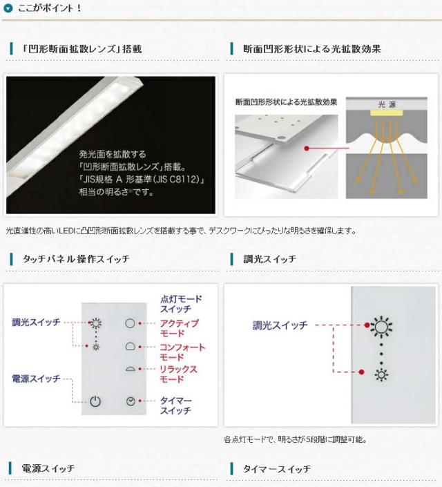 ●コイズミデスクには光の質を考えたLEDライト「ECOレディ」を搭載しています。