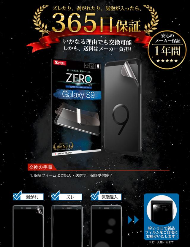 【365日完全保証】 Galaxy S9 フィルム 湾曲まで覆える 4D 全面保護 SCV38 SC-02K 保護フィルム フィルム 貼ったら消える魔法のフィルム 気泡ゼロ 2枚セット 極薄0.08mm 究極のさらさら感 衝撃吸収 OVER`s オーバーズ TP01