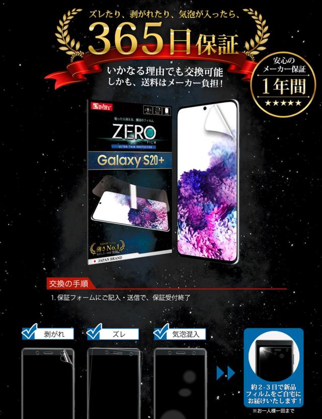 【365日完全保証】 Galaxy S20+ Plus 5G フィルム 湾曲まで覆える 4D SCG02 SC-52AL 保護フィルム フィルム 貼ったら消える魔法のフィルム 気泡ゼロ 2枚セット 極薄0.08mm 究極のさらさら感 衝撃吸収 OVER`s オーバーズ TP01