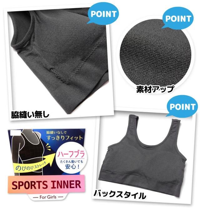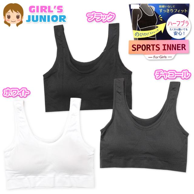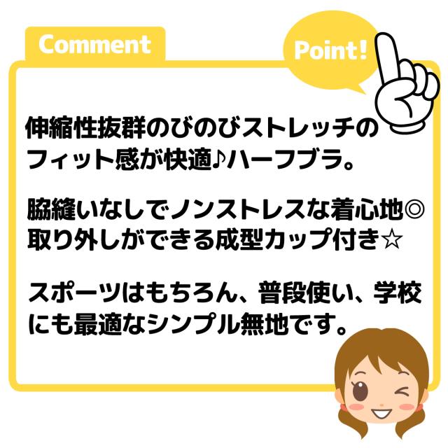【送料無料】女児 ジュニア ハーフブラ 成型挿入カップ ストレッチ 脇縫いなし 無地 肌着 下着 インナー 子供 女の子 140cm 150cm 160cm 165cm yg-0800【メール便対応】