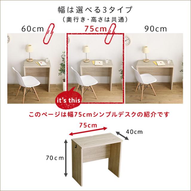 子どもから大人まで使えるリビングに合うシンプルデスク75cm幅!