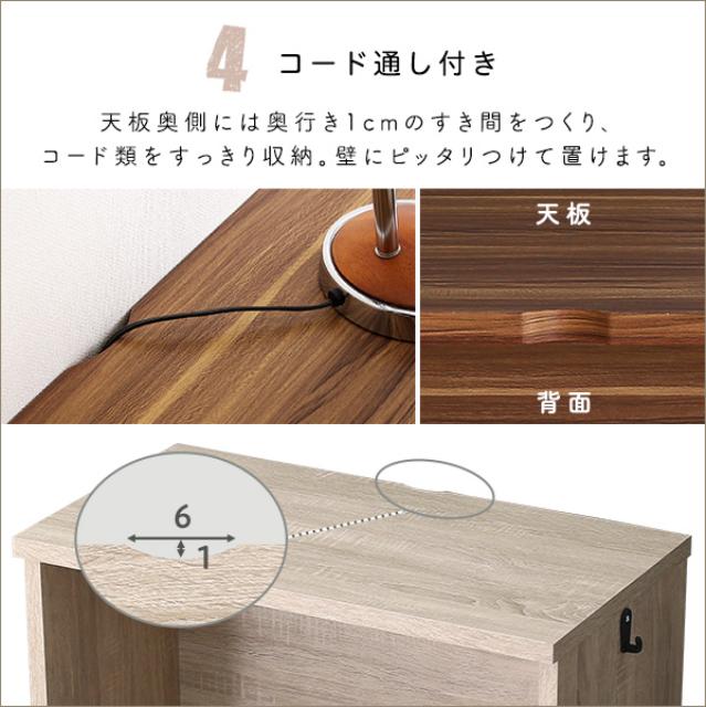 デスクの背面にはライトやパソコンのコードを通せる隙間を作っているので、スッキリ収納できます。