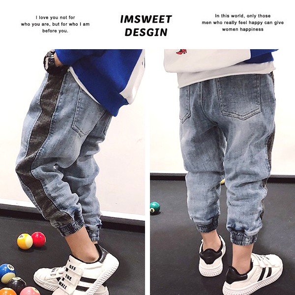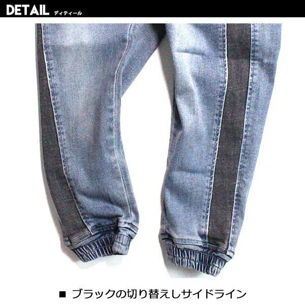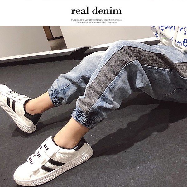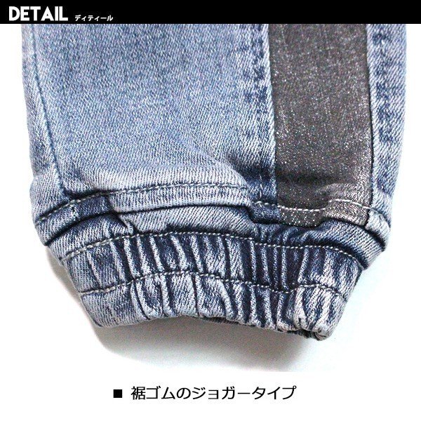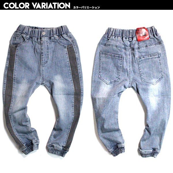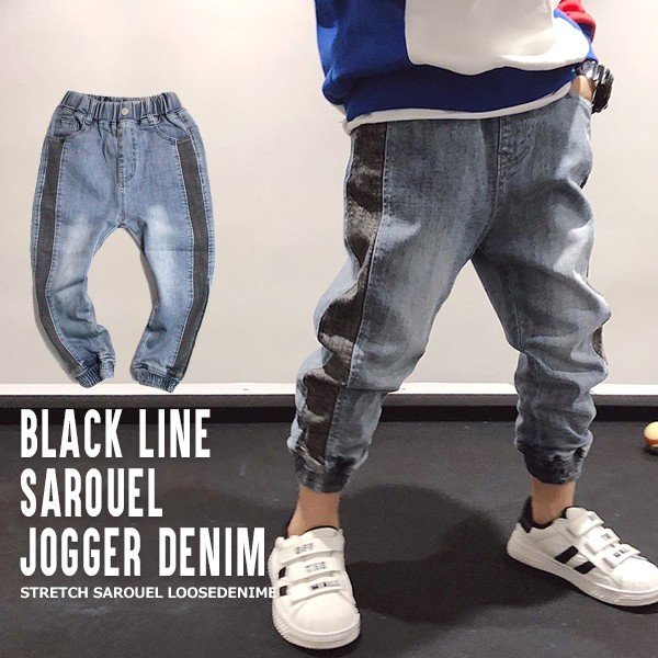 韓国子供服 キッズ ロングパンツ ブラックサイドライン ジョガーデニム ストレッチ USED加工 ジーンズ Gパン デニム 男の子 春秋冬新作