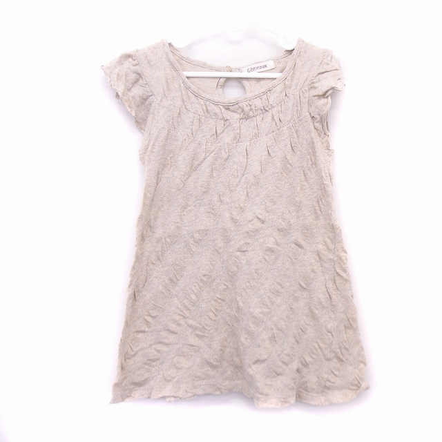 【中古】Gemeaux 子供服 カットソー チュニック ボートネック フリル 半袖 コットン 綿 麻混 ツイード 120 ベージュ
