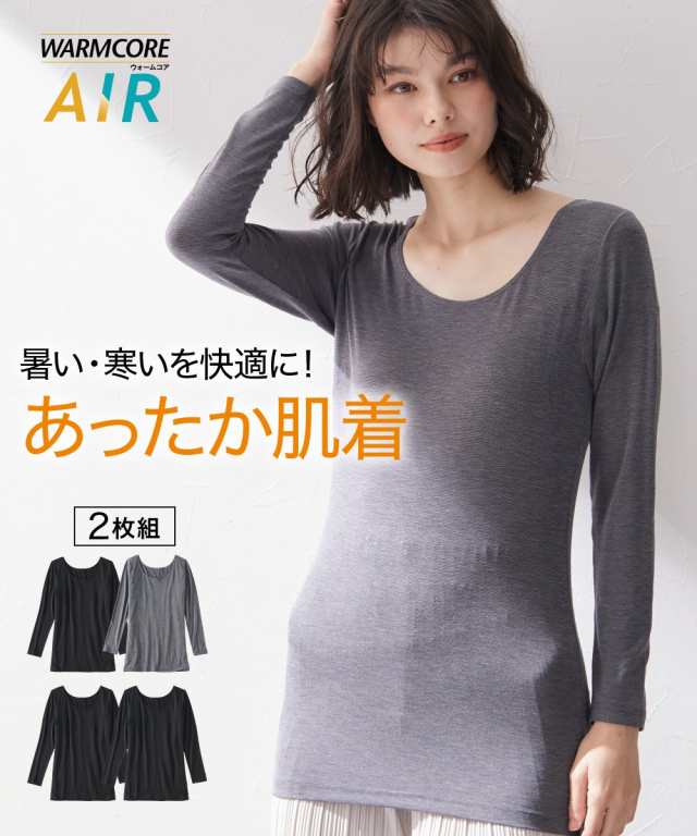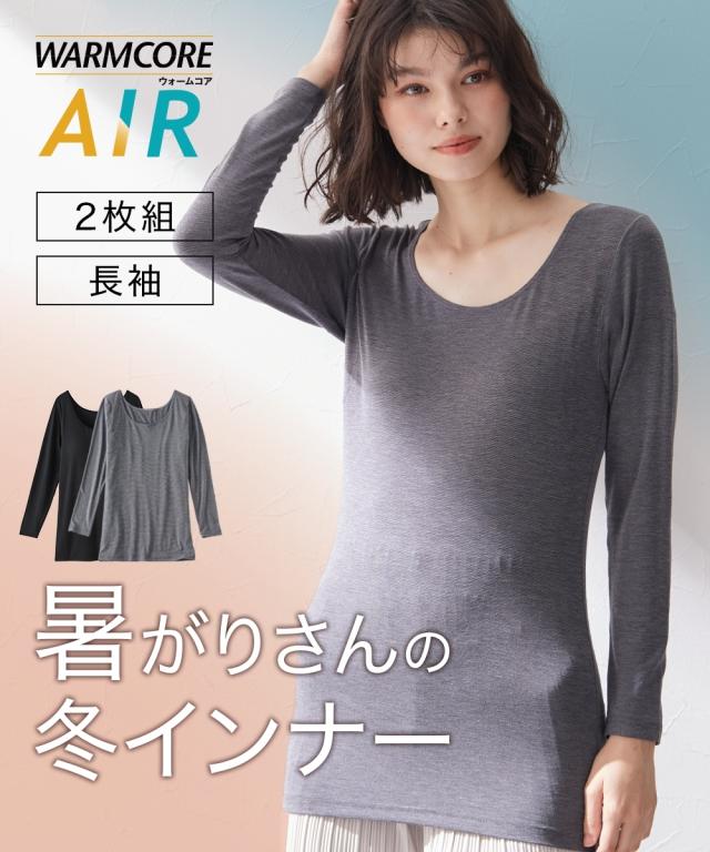 暑がりさんの冬インナー 襟ぐり広め長袖インナー2枚組(吸湿発熱・吸汗速乾・UVカット) ウォームコアAIR