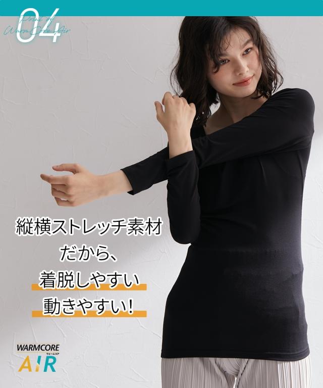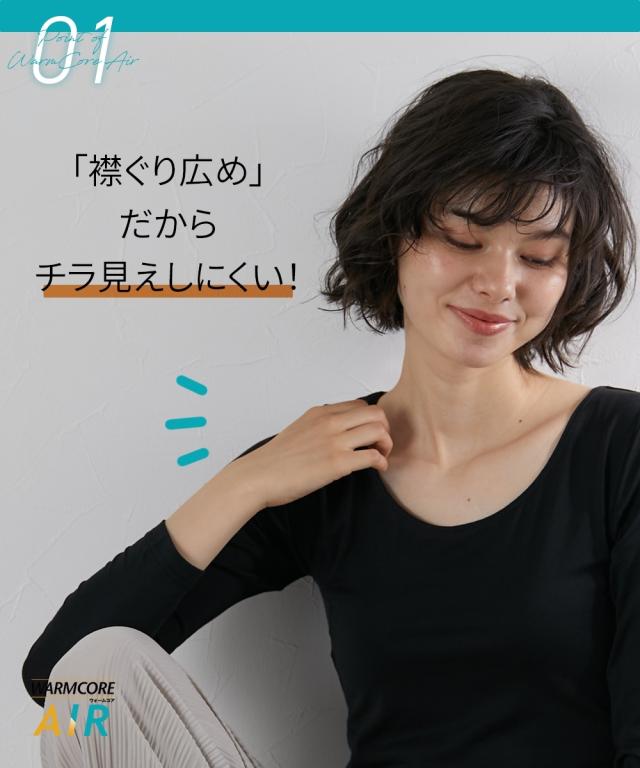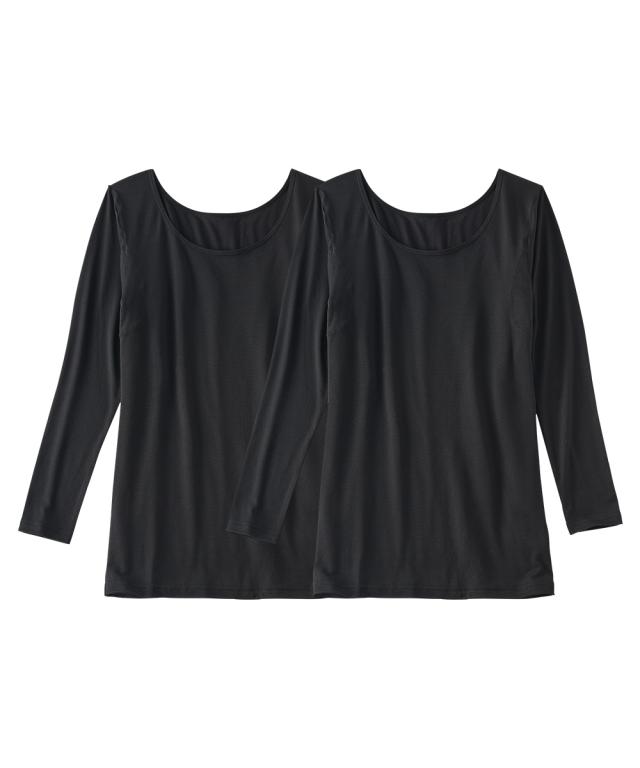 暑がりさんの冬インナー 襟ぐり広め長袖インナー2枚組(吸湿発熱・吸汗速乾・UVカット) ウォームコアAIR