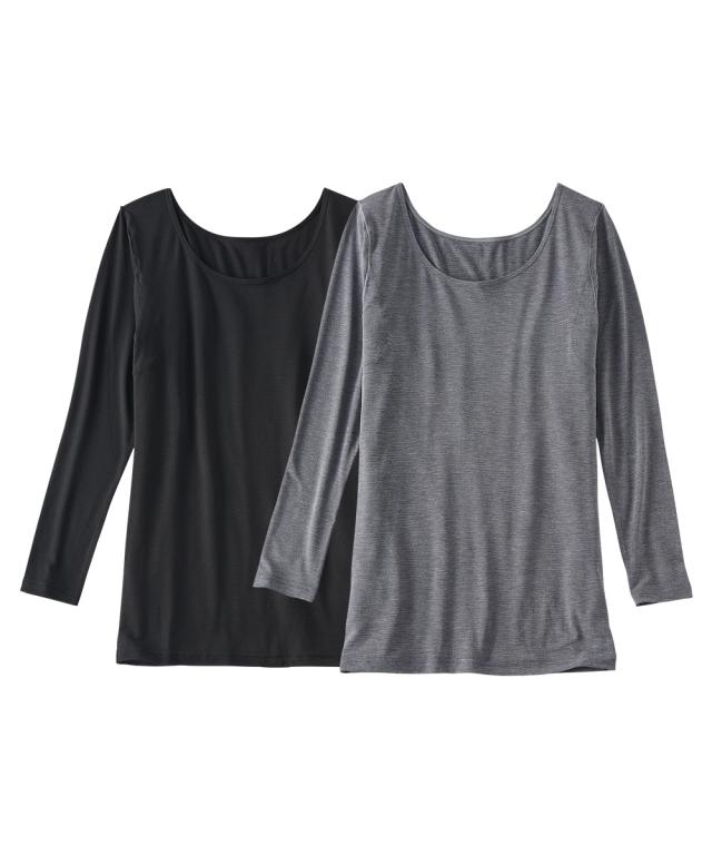 暑がりさんの冬インナー 襟ぐり広め長袖インナー2枚組(吸湿発熱・吸汗速乾・UVカット) ウォームコアAIR