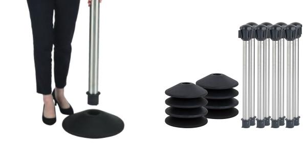 | セットも撤去も楽々 ポールをウェイト部に差し込んで回すだけで簡単にセットできます。脱着が楽なので、収納・移動が大変便利です。 ※外す場合はポールを反対に回し、ベースから引き抜きます。 | 省スペース収納 ウェイトとポールを簡単に取り外すことができるので、収納時も場所を取らず、省スペースでの保管が可能です。 |