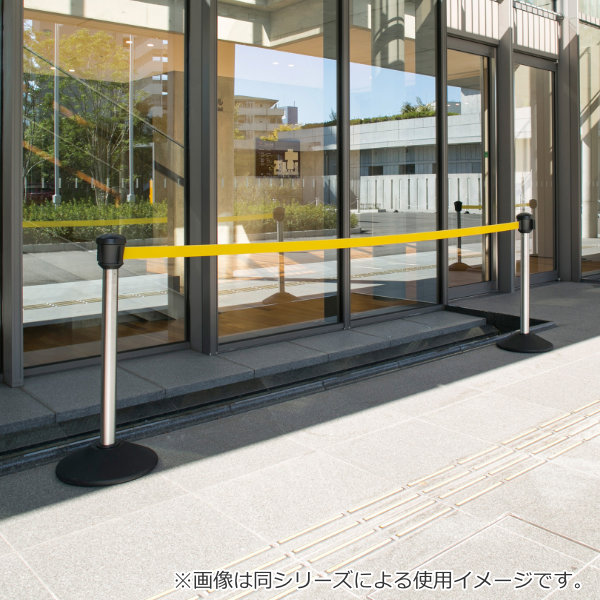 広い区間の誘導・規制を少ない本数で設置することができます。トータルコストの低減と設置労力の省略化が図れます。ベルトの長さは3.6mです。
