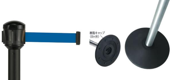 | 材質 | ヘッド:ASA ベルト:ナイロン(48mm巾) ポール:ステンレスに粉体塗装仕上 ベース:再生ゴム・TPE |