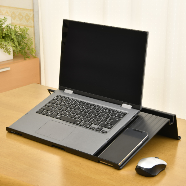 ●背筋が伸びて、長時間のPC作業もラクラクできるノートパソコンスタンドです。