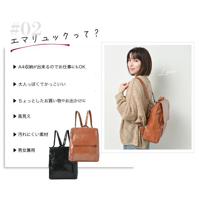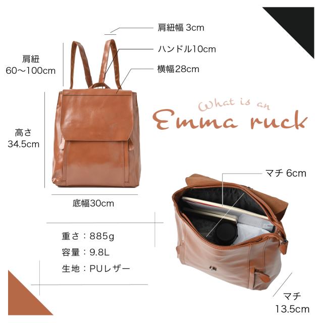 エマリュック (Emma ruck) リュック レディース ナイロン リュックレディース 背面ファスナー リュックサック おしゃれ マザーズリュック 大人 女性 オトナリュック 通勤バッグ 収納 高見え 大容量 デイパック rucksack 人気 ruck りゅっく 通勤 通学 大学生 防水レザー